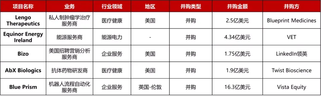 本周5起1亿美元以上的收购并购: