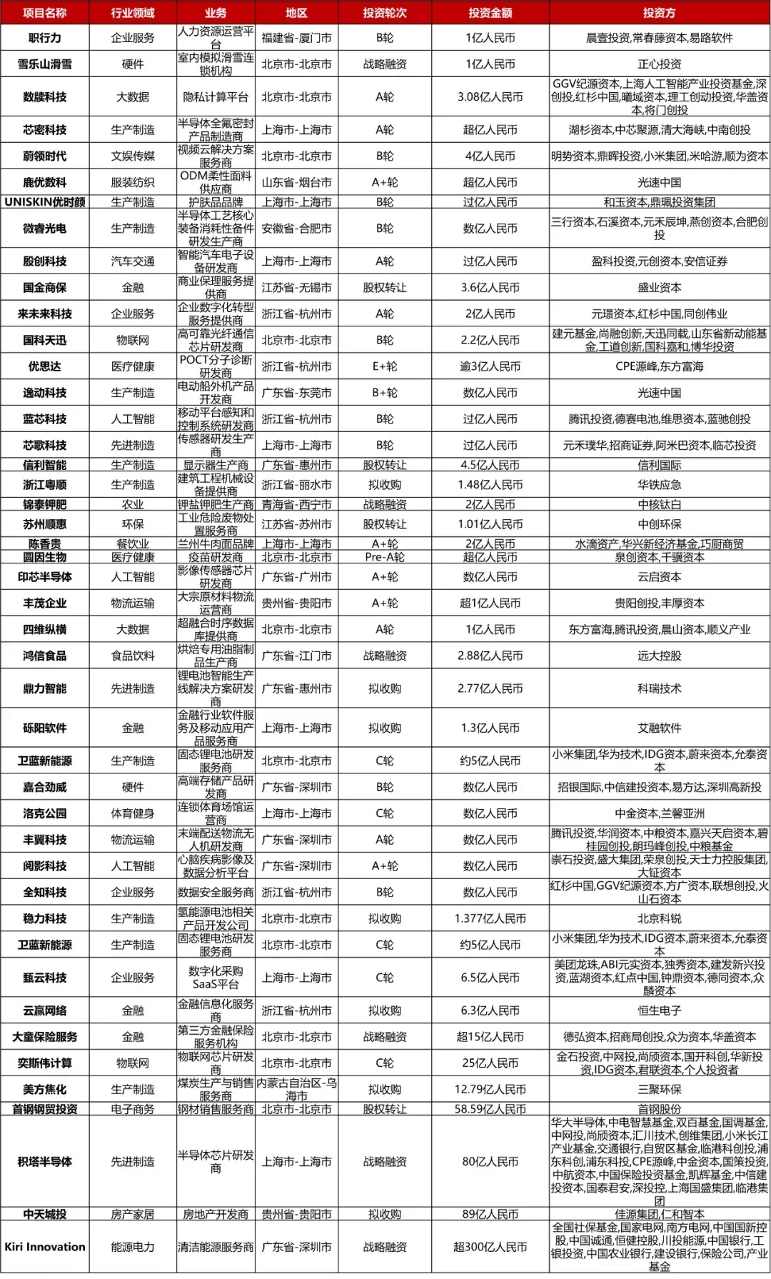 本周共有45起1亿人民币以上的融资事件: