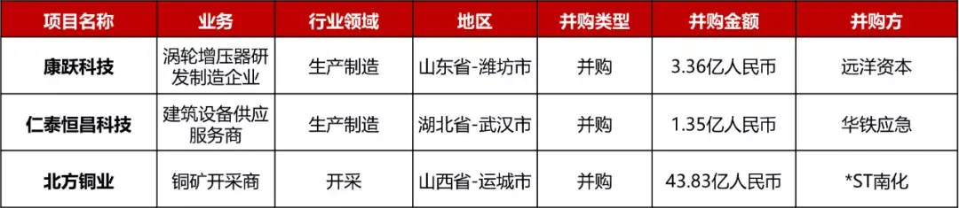 本周共有3起1亿人民币以上的并购事件: