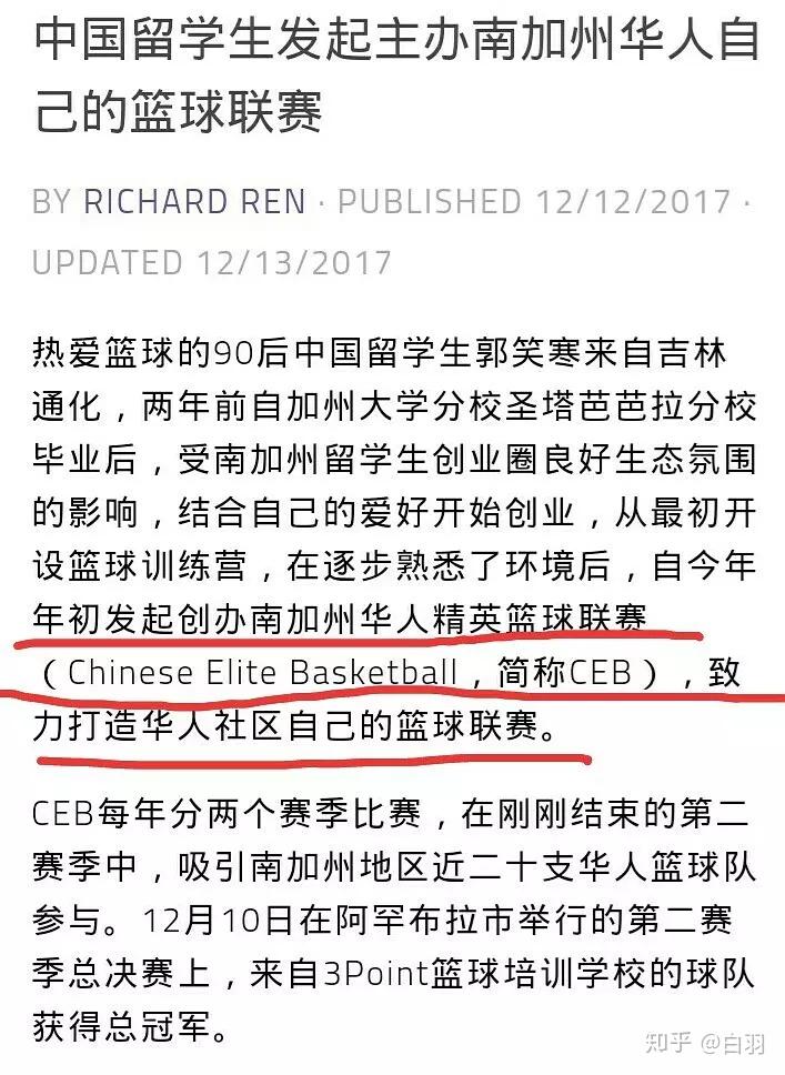 CEB(Chinese Elite Basketball),简单来说就是华人群体组织篮球联赛,也会和当地的培训师合作举办对职业球员和篮球迷的训练营。