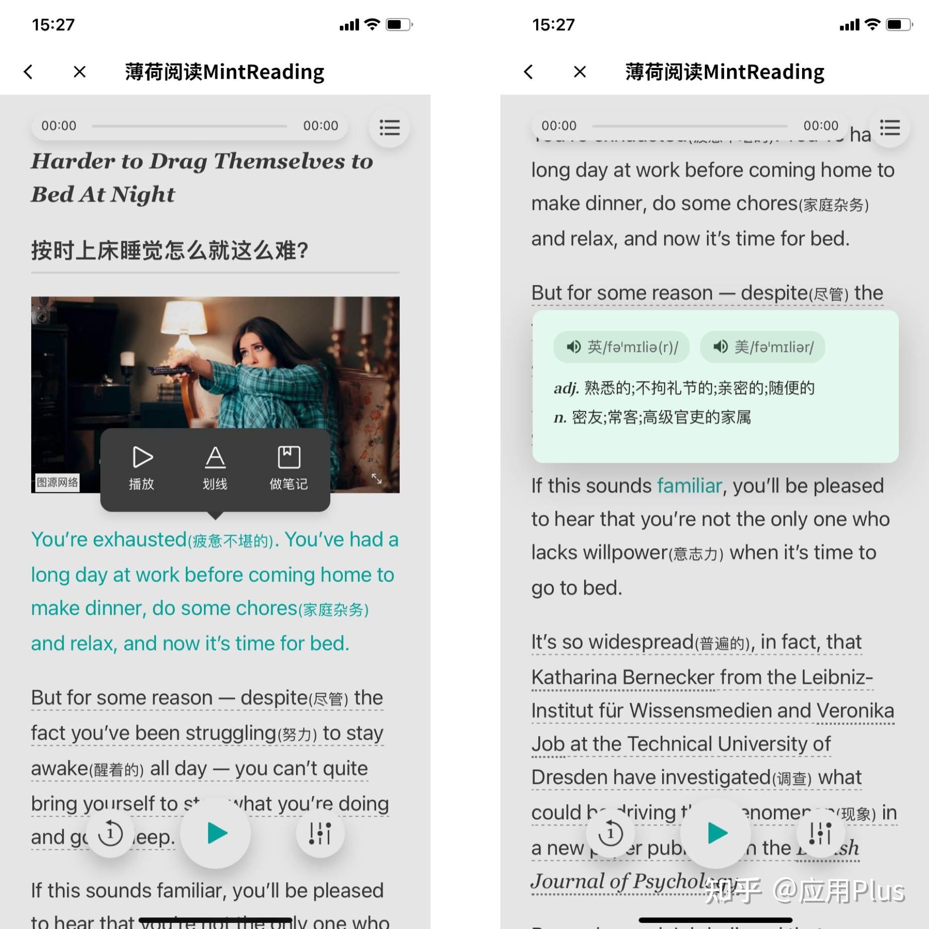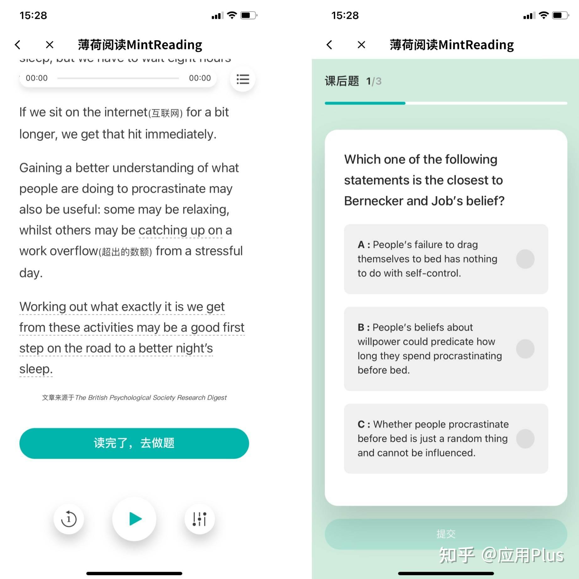 说到“百词斩” ,这里不得不再给大家安利一个百词斩旗下的英语外刊精读app「薄荷英语外刊」- Android 和 iOS 都可以下载。以前我也用过很多其他的英语阅读软件,但是软件里塞给我们的内容太多了o(╯□╰)o,无形中有点不知所措,该从哪开始呢?选择什么文章读呢?同时也容易给自己带来压力和挫败感,内心会觉得 “我还有很多文章都没读过,这个单词不清楚、那个短语也不会,我的水平好差啊...” 要不了多久就很容易放弃。