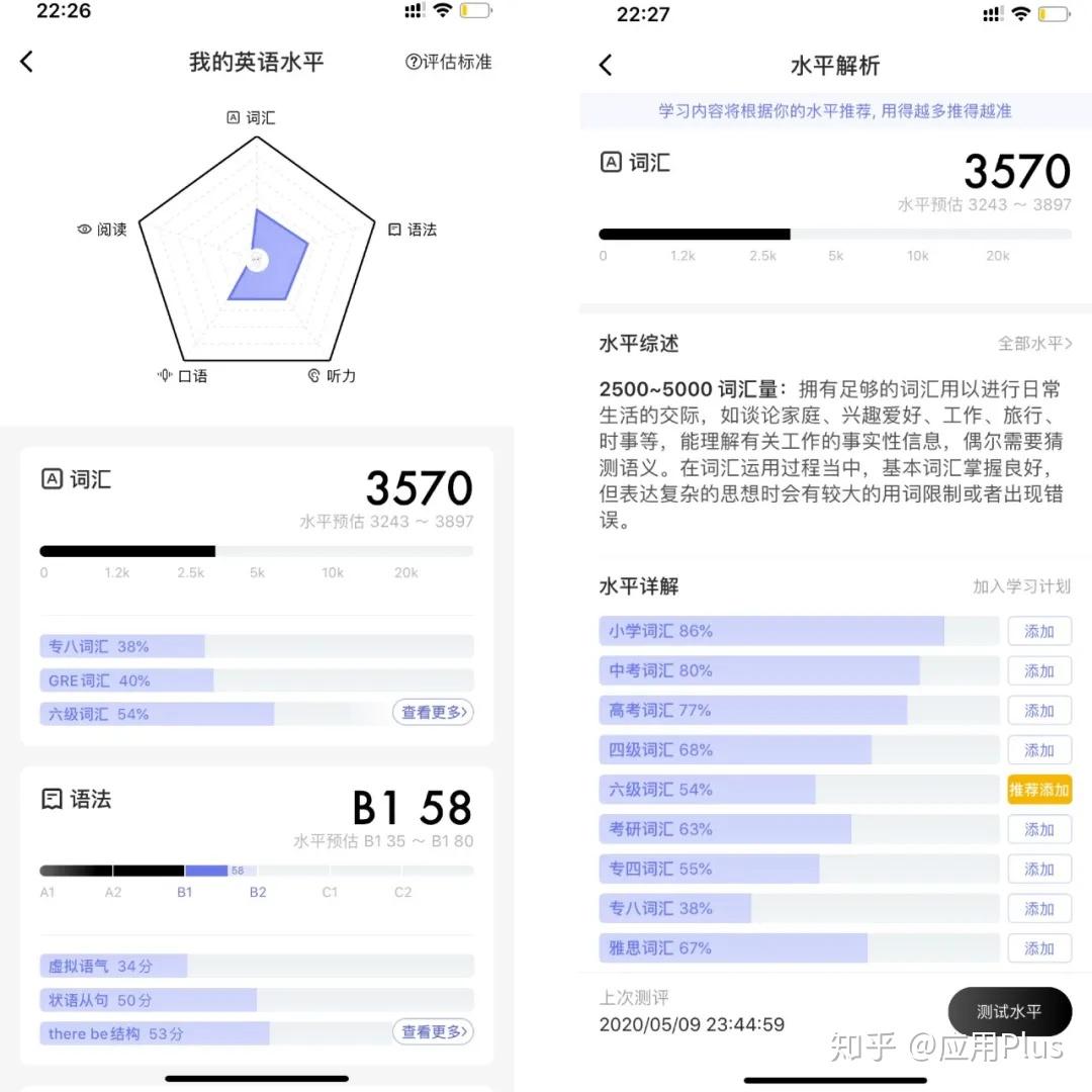 另外一个很大的亮点就是免费提供词汇、语法、听力、口语全方位的水平测试,让你知道自己大概处于一个什么样的英语水平阶段。