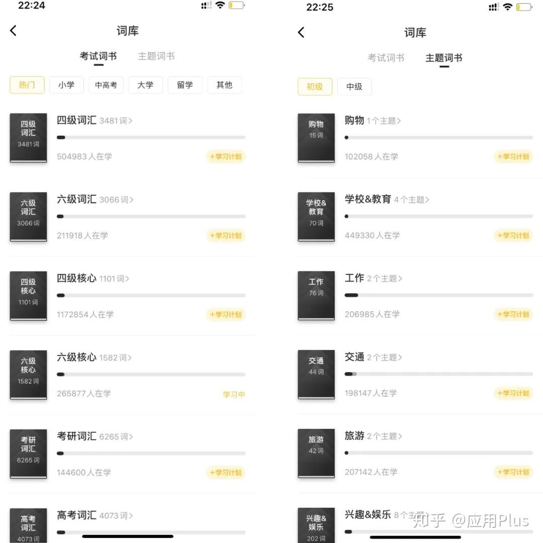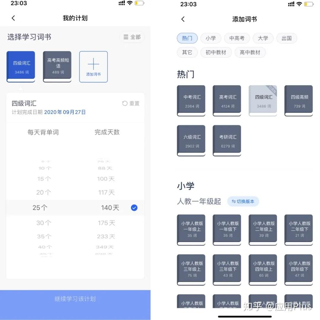 百词斩的词库非常丰富,从小学到大学、考研、出国留学,每个阶段都有,可以说满足了各个想学习英语的人群。根据自身水平,添加要背诵的词书,然后制定计划开始背单词。