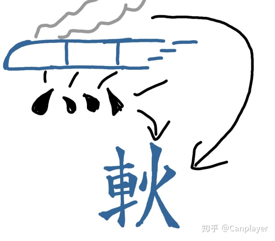 感觉口字旁的字都值得怀疑呢……这一派学者认为,这个字应该来源于汉字“灬”,“灬”不但读音和“车飙”非常类似,而且更重要的是,这个形状不就像一节一节的车厢吗?