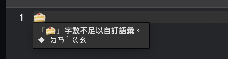 小麦注音与奇摩输入法的实现只适合横排输入时的显示。一旦纵排输入,整个文字提示视窗就还是横排显示的。威注音 2.5.0 版对该模组做了重写,引入了 NSAttributedTextView 这个可以纵排显示文字的 NSView (在 Fuziki 的同款功能的 UIView 的基础上改来,且得到他本人的准许)。但是呢,因为系统字型的 vert 特性在显示注音、汉语拼音、英文、阿拉伯数字时的效果非常糟糕,使得笔者决定做出如下处置:
