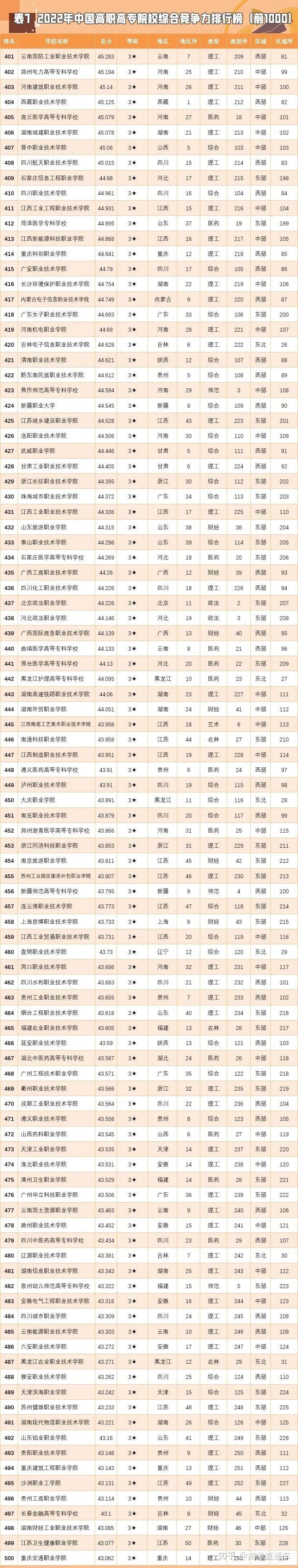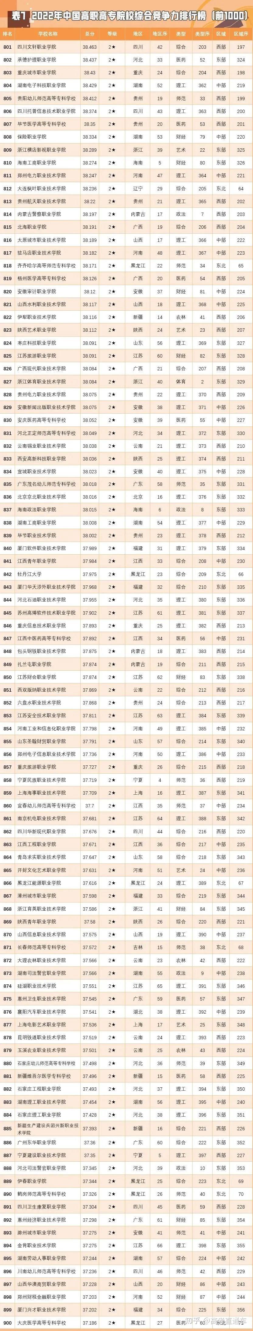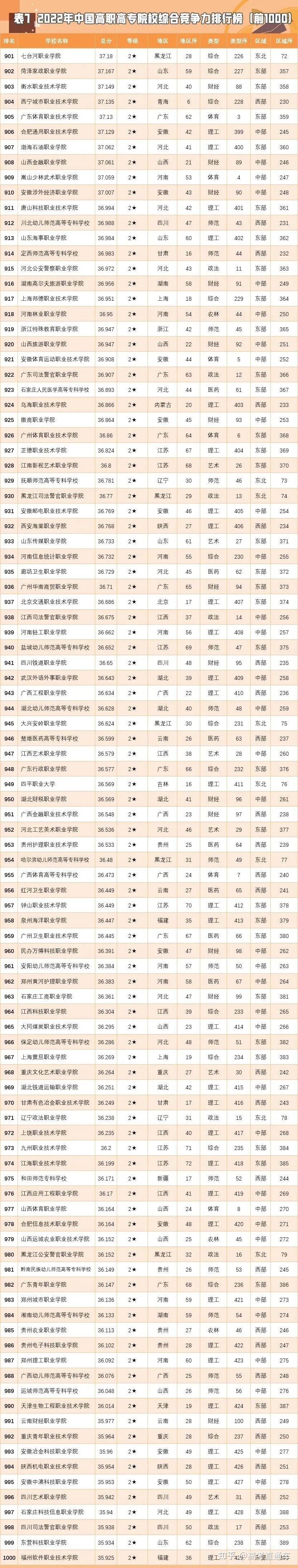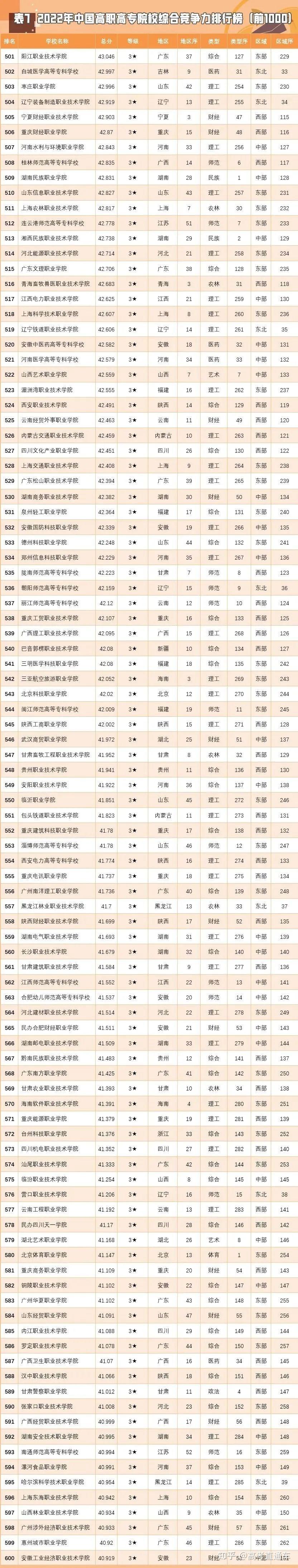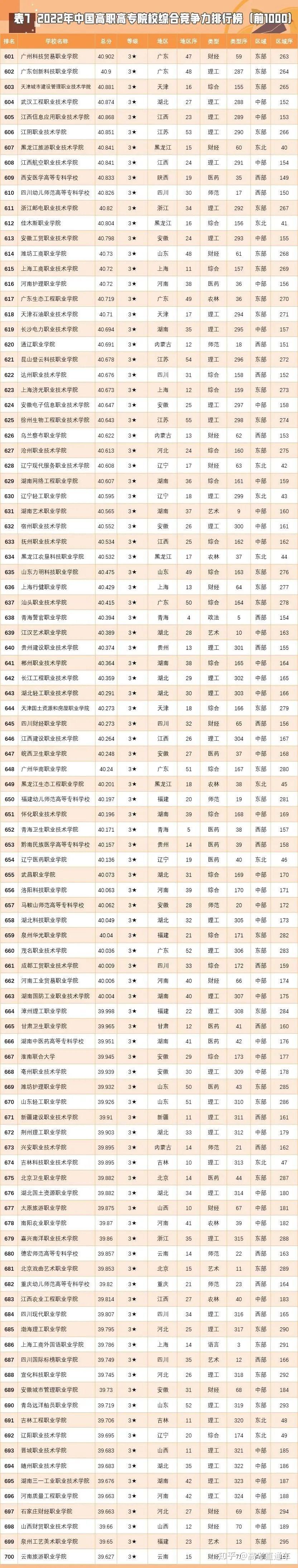 下表是2022年金平果中国高职高专院校综合竞争力排行榜1484所高校中的前1000所名单。
