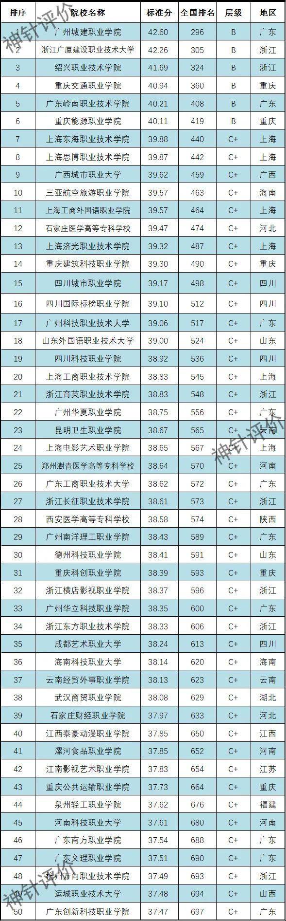 进入A++级(前1%)的广东院校还有广东轻工职业技术学院、深圳信息职业技术学院。这些院校可以认为是我国高职院校中的优秀代表。