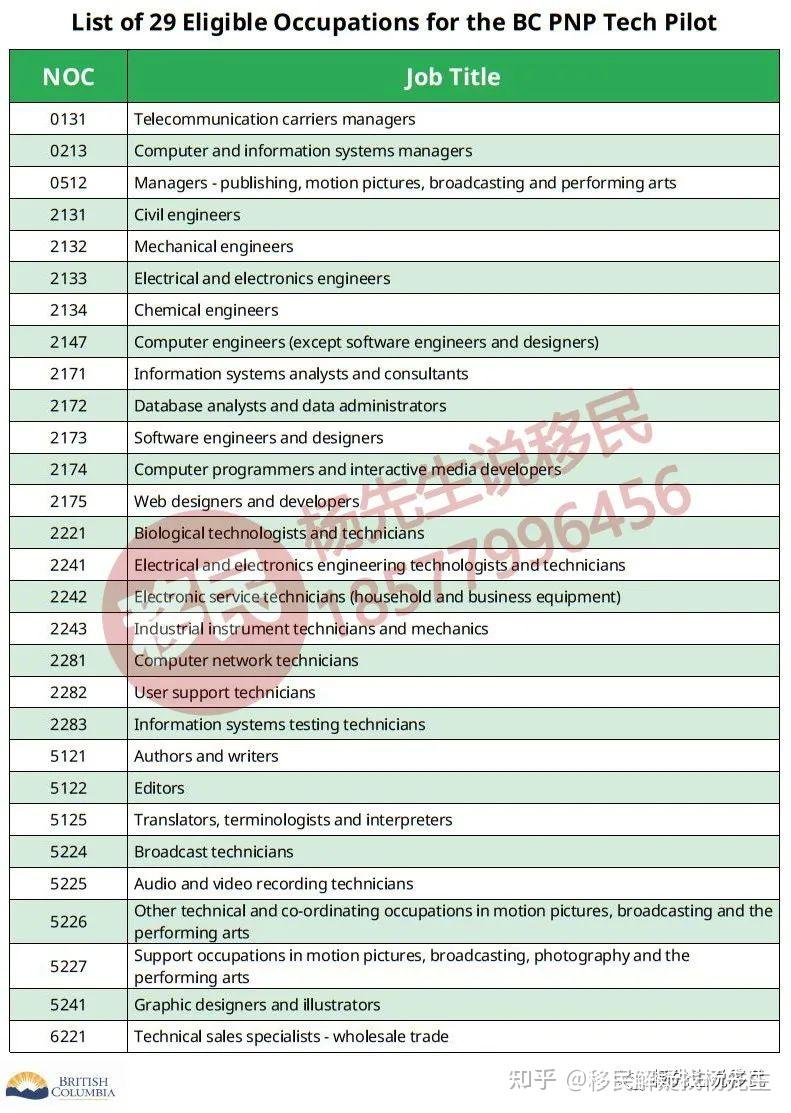 5、BC PNP TECH职业列表(29个科技职业列表)