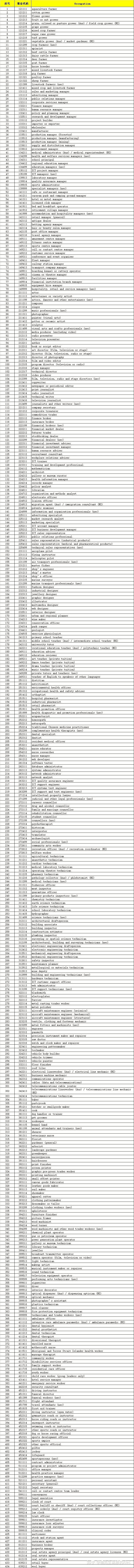 · C类:普通类级别工作例如:医疗护理,金融银行服务,机械维修,司机等。