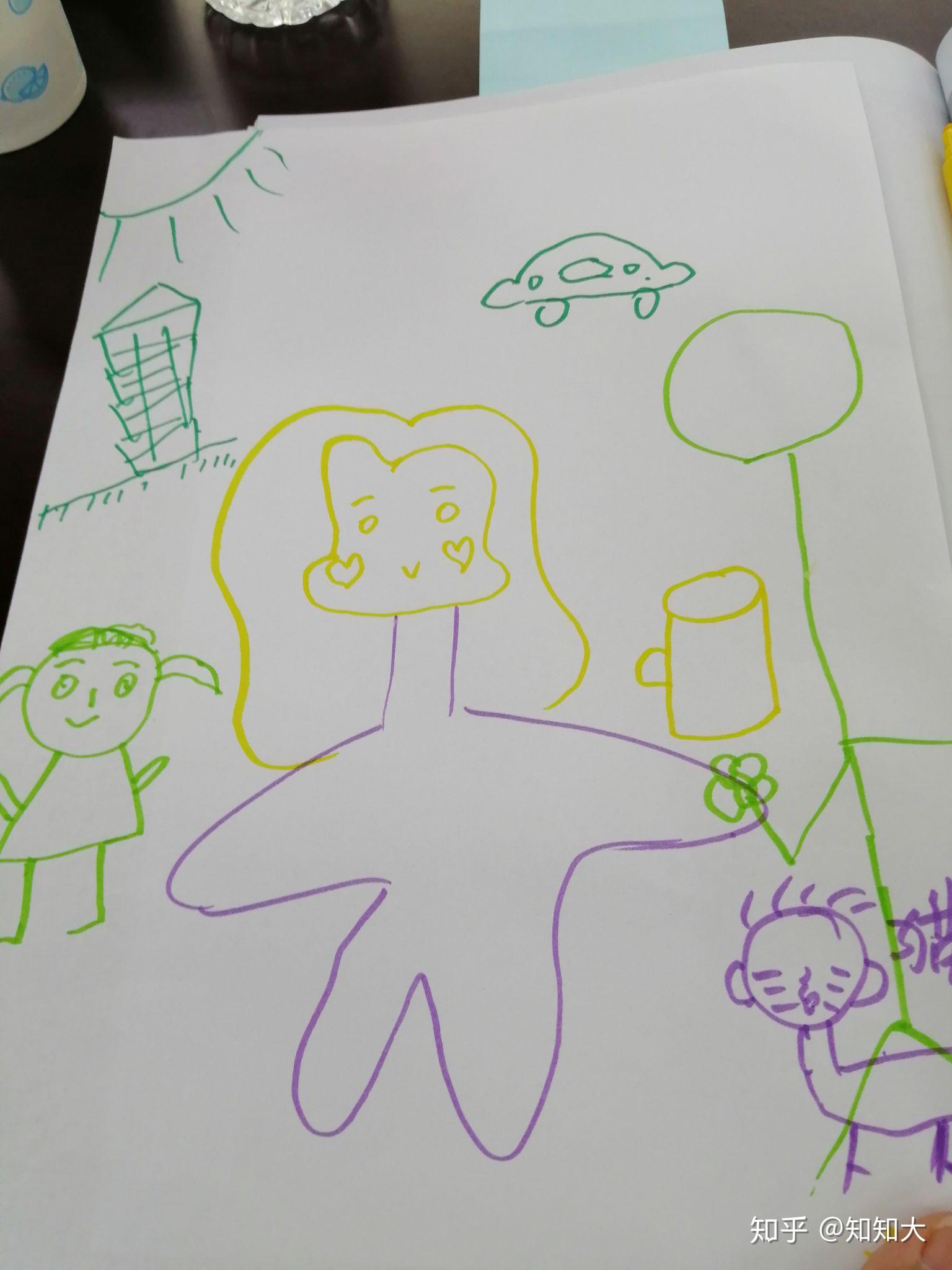 (这是一个游戏环节,抱抱老师让我们想象十年以后的自己在干什么,然后我刚画了一个可爱的头和水杯,就给了旁边的小伙伴继续画,几轮下来,我的画就成了这个样子 ,嗯,小可爱们的想象力很丰富)