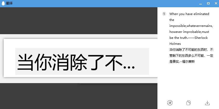 在弹出的翻译窗口中,就会提取截屏的文字并自动进行翻译。而且翻译后的文字可以选择复制到粘贴板或者下载为本地的文本。