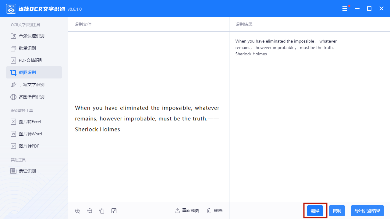 这是一款OCR文字识别工具,可以直接截图提取文字,并且右下角可以直接进行翻译。