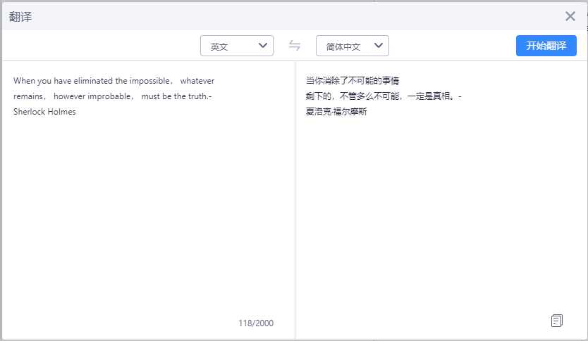 使用翻译功能,会自动检测目标语言,并且默认翻译为中文。