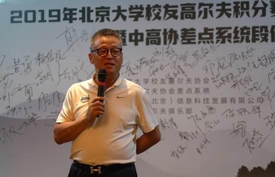 北京大学校友高尔夫协会副会长刘岩开球仪式致辞,鼓励低差点同学带领高差点校友们共同进步