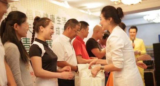 付萍会长(左)特意邀请全场晚宴赞助商,恒顺名车董事长太太(右)上台讲话▼