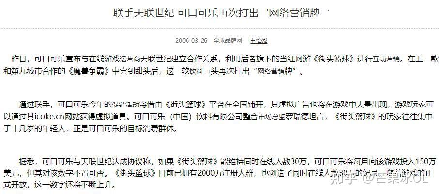 成熟的商业模式被天联世纪拿来本土化后套用,没想到,这一招的效果真的还很不错。2006年,《街篮》开始与可口可乐和Nike合作。游戏内的篮球场被替换成了可口可乐的广告,游戏外则有无数瓶带着《街篮》主题包装的可口可乐被推向市场。而在《街篮》与Nike的合作中,天联世纪除过在游戏内植入广告外,还直接在商城中上架了10款“球星款”和“职业款”的Nike球鞋。