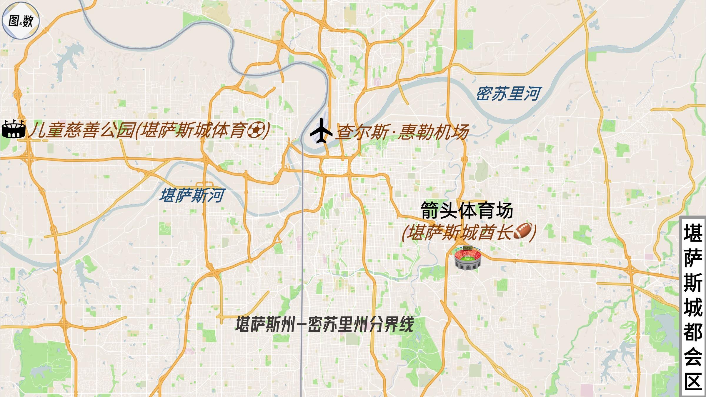 堪萨斯城都会区在自然地理方面有点儿像两江交汇的武汉或重庆,它这里是两河交汇——密苏里河以及它的支流堪萨斯河。成为世界杯比赛场地的是容量超过7万人的箭头体育场,它位于密苏里州堪萨斯城的杜鲁门体育综合体内,是橄榄球队堪萨斯城酋长的主场,紧挨着棒球队皇家堪萨斯城的考夫曼体育场。