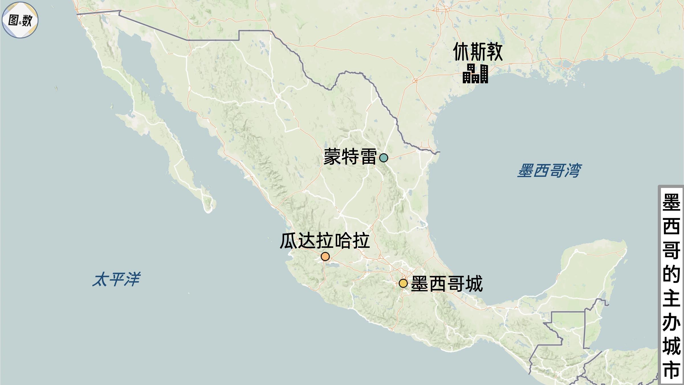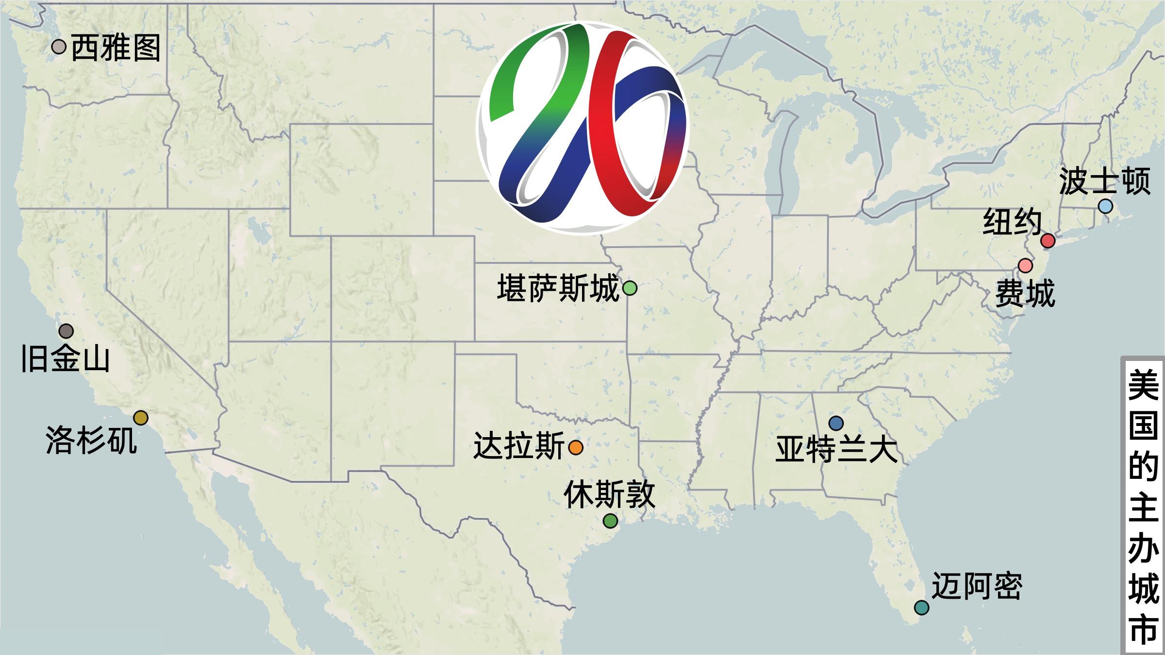 朋友们好,我是图述数说,一个喜欢做地图的小微UP主。我们的足球地理在上期讨论了2026世界杯在加拿大和美国西海岸的3座主办城市,本期要说的则是美国的另外8个举办地以及预备使用的体育场。