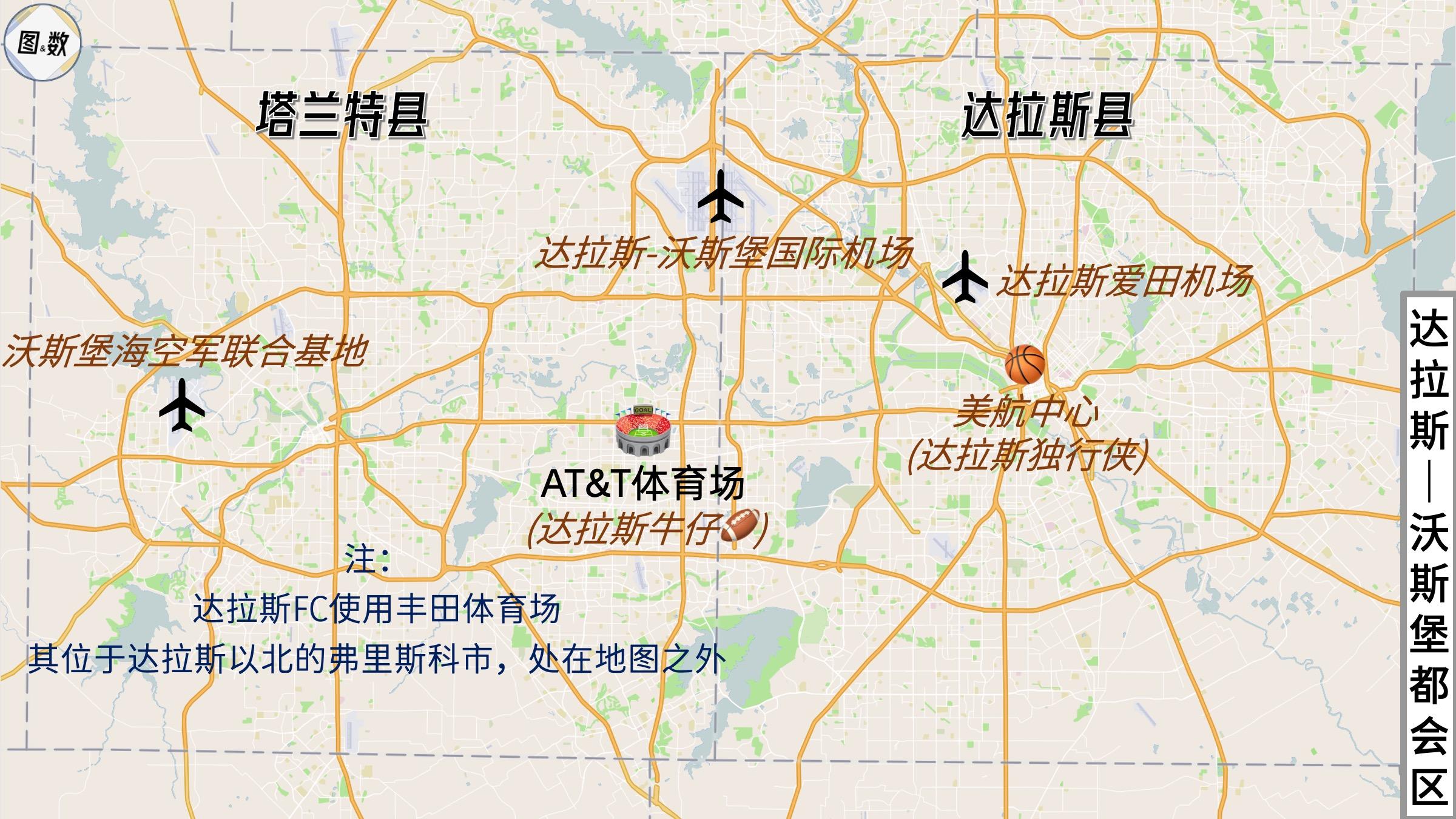 其一是肯尼迪总统殒命之地——达拉斯,这里同时是另一位总统小布什退休后的长居之地,因为他在荣登大位之前曾担任过德州州长,对这片土地颇为熟悉。今日的达拉斯都会区由达拉斯县和塔兰特县共同组成,全称是达拉斯-沃斯堡-阿灵顿都会区,而成为世界杯比赛场地的就是两县交界处、阿灵顿市的AT&T体育场。