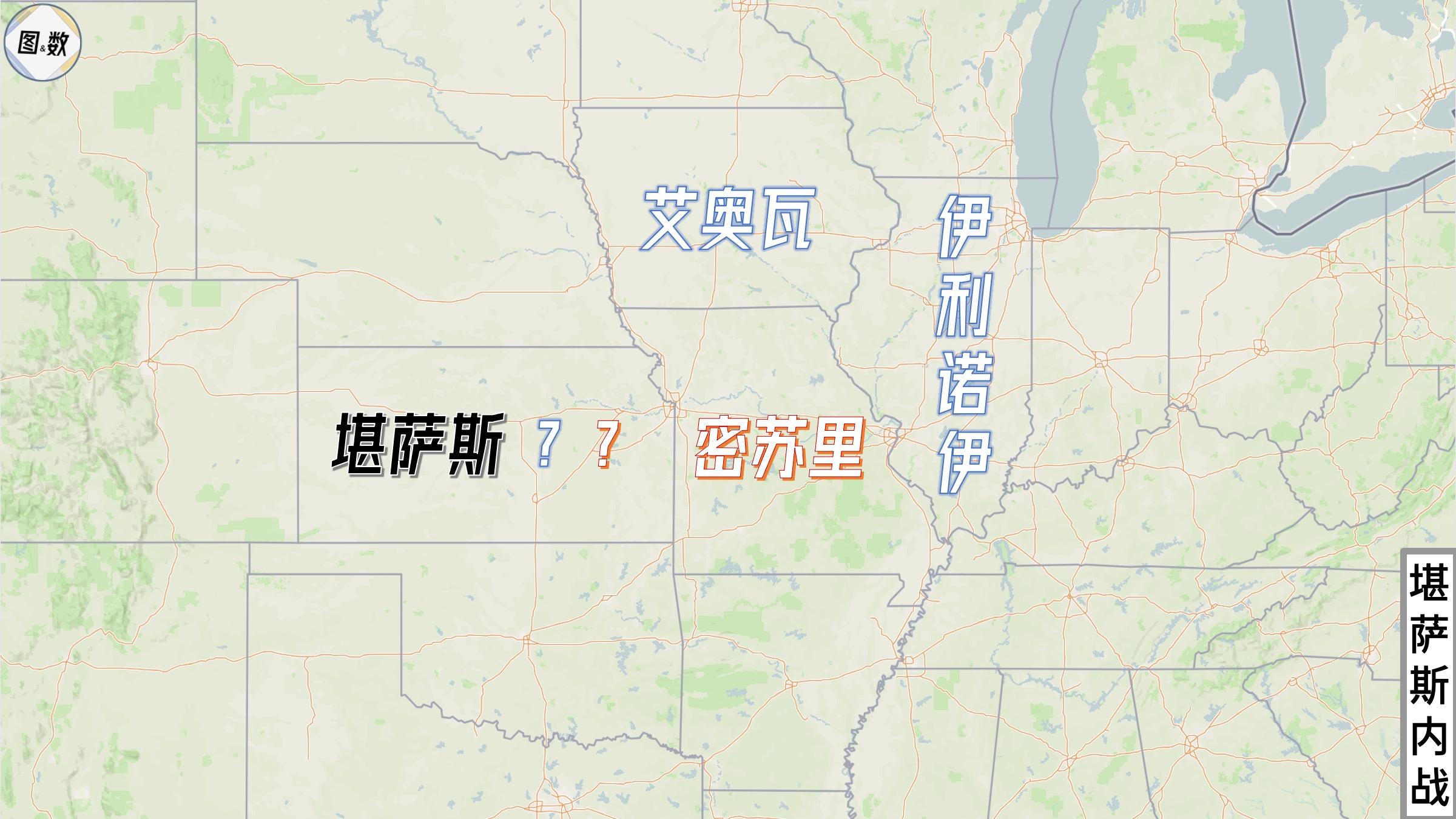 当时的密苏里州是蓄奴州,其东侧的伊利诺伊州和北侧的艾奥瓦州都是自由州,如果西侧的堪萨斯州再成为自由州,那密苏里州将处在三面包围的不利境地。由于国会裁定由堪萨斯州居民投票决定其政治地位,所以北方和南方都向堪萨斯州派出了大量移民,并且大打出手。