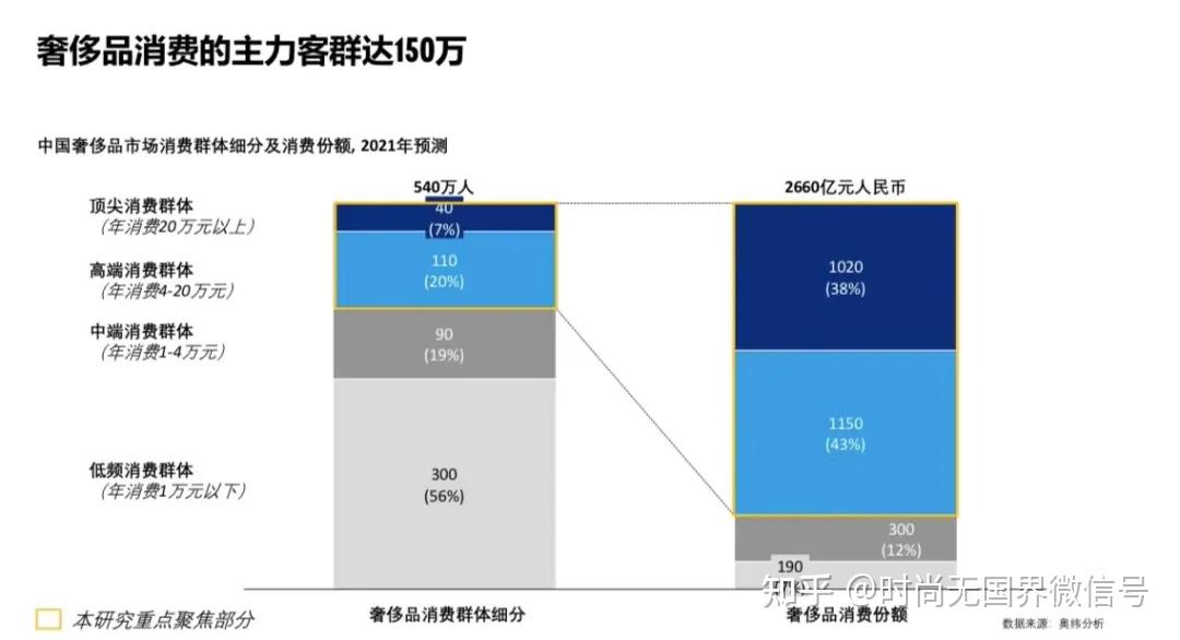 据奥纬咨询发布的中国奢侈品服饰消费者调研显示,今年的奢侈品消费者中,有50%在过去的12个月中首次购买奢侈品,而这些新入场的消费者对今年市场增量的贡献预计将超过80%。值得注意的是,新增消费群体中,有 40%的消费者为“Z 世代”(年龄 25 岁以下),他们擅长混搭,偏好潮流款式和小众品牌,包括中国本土设计师品牌;相较上一代,对二手奢侈品和中古款也持更加开放的态度。据悉,目前中国的奢侈品消费者数量达540万,其中年支出超过4万元的消费者达150万人,而在新入场消费者的带动下,2021 年奢侈品市场预计将增长40%至约2660亿元。