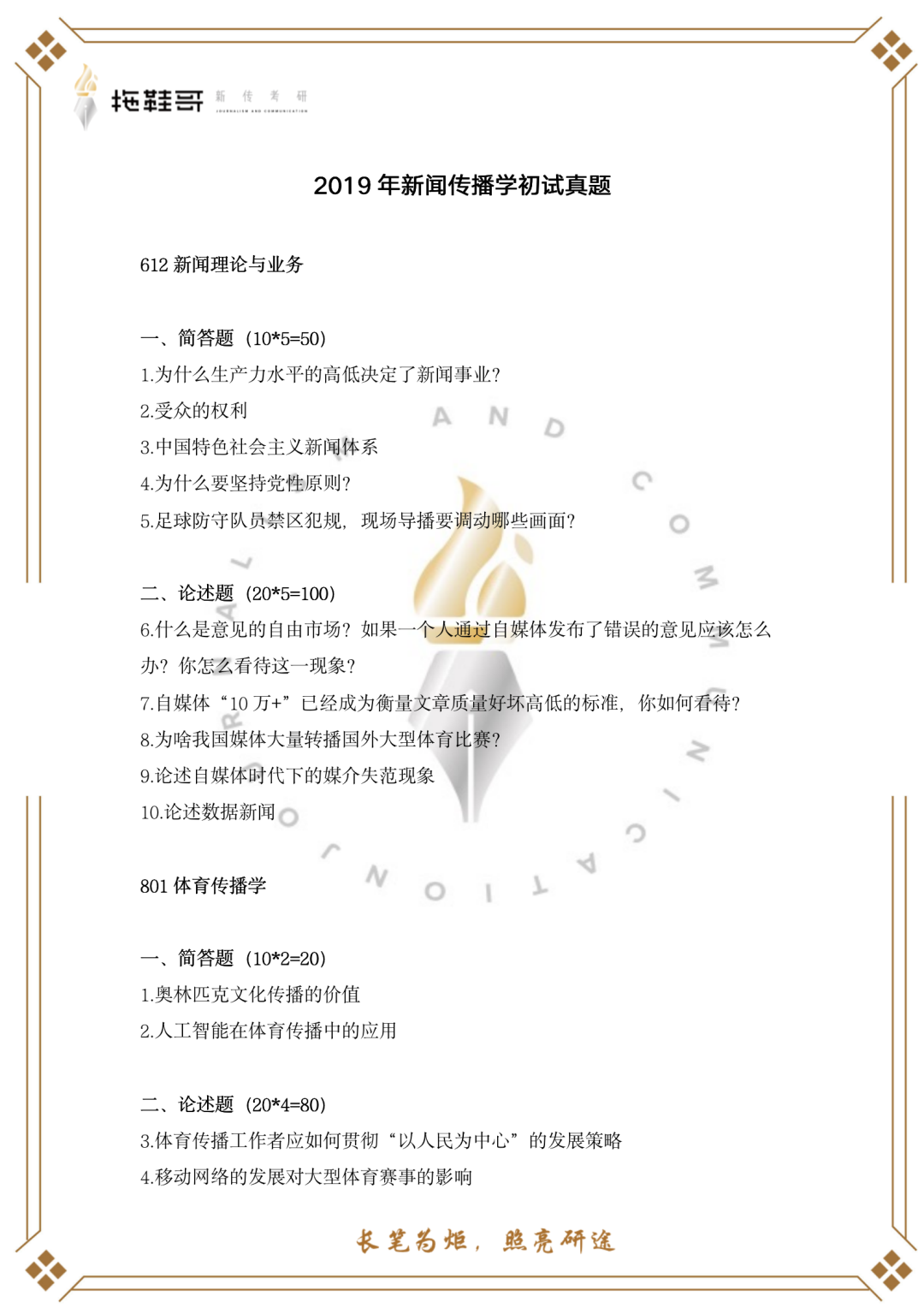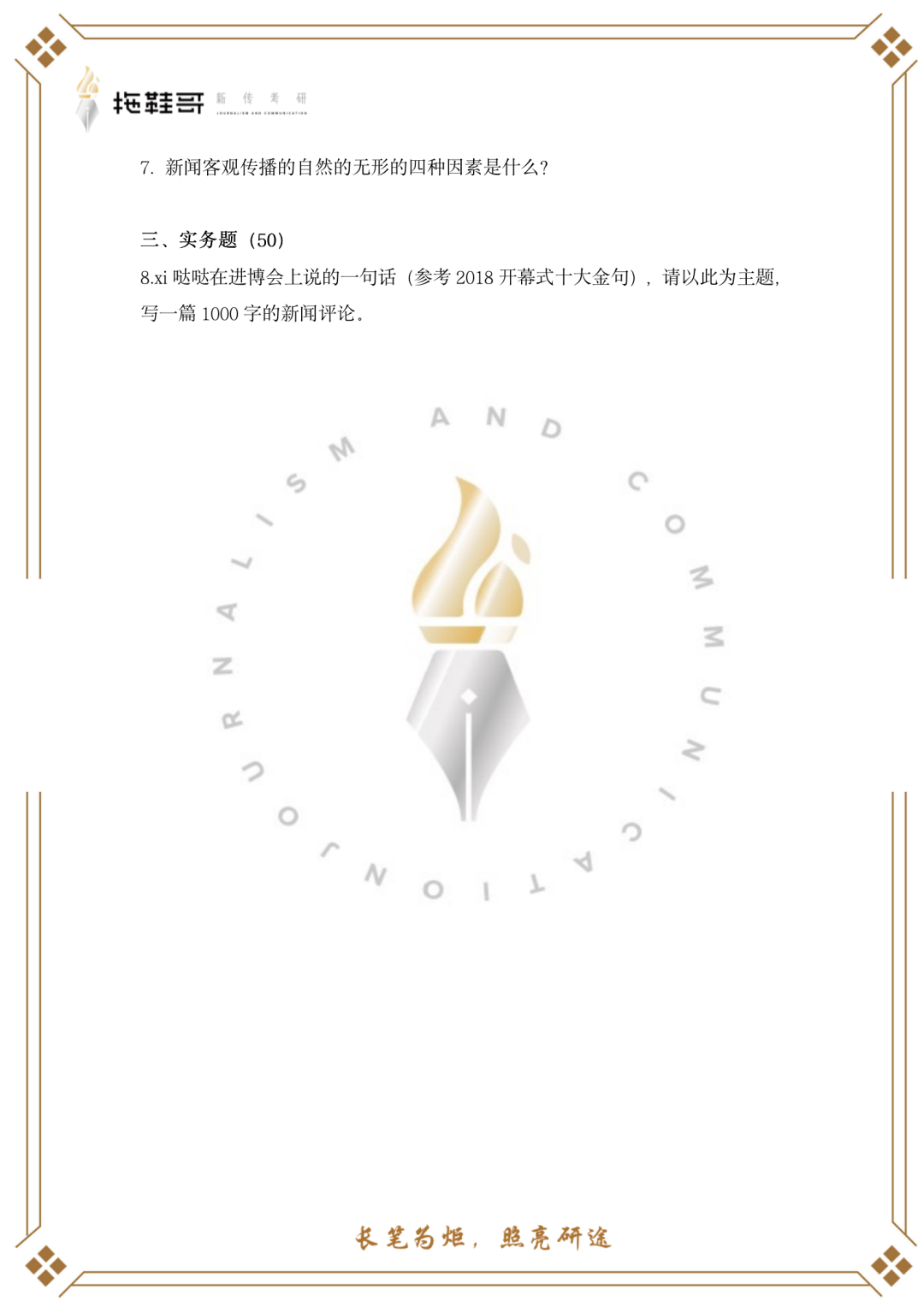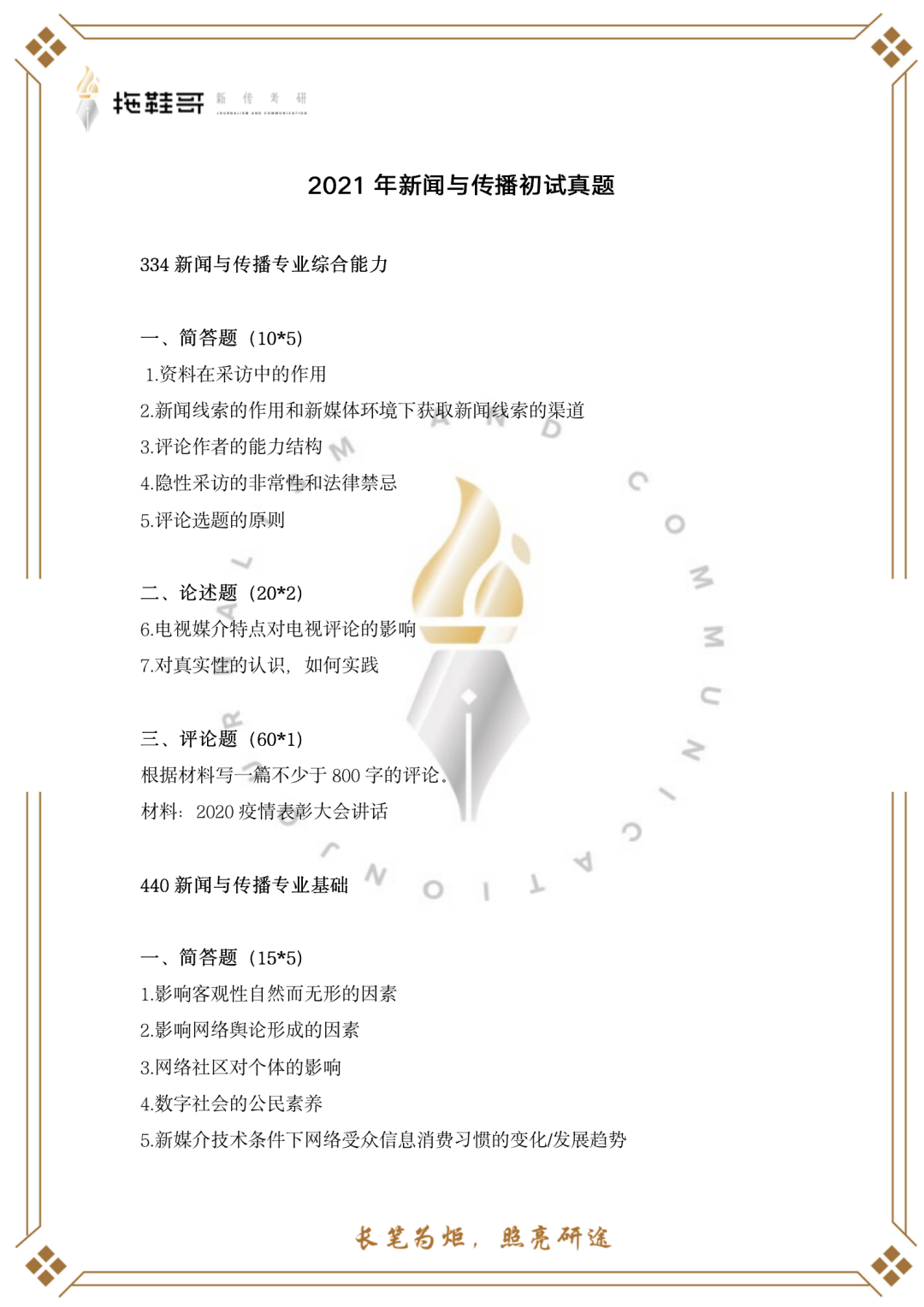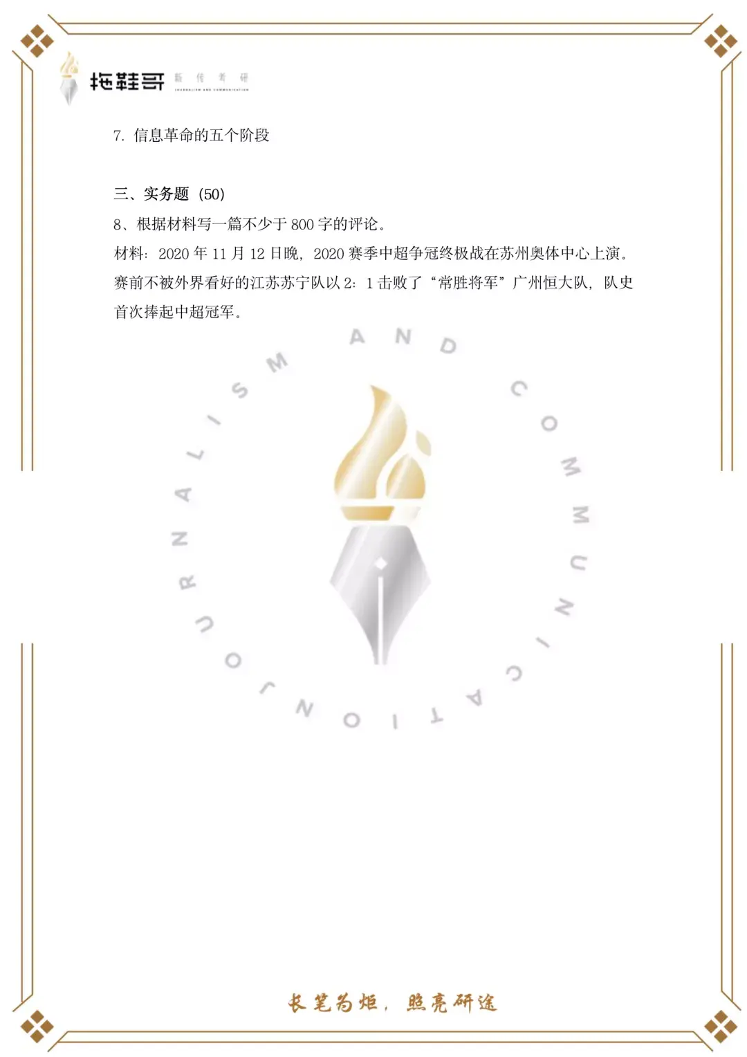 上体专硕有四本参考书,《当代新闻采访》和《新闻评论学》考查知识点多为书本固定内容,除体育新闻评论实务大题外。《新闻理论教程》和《数字媒体传播概论》通常结合新媒体/互联网的大环境进行考察,有时会结合一些热点,如“短视频、自媒体、公民记者”来考查,书上的知识也要掌握透彻。