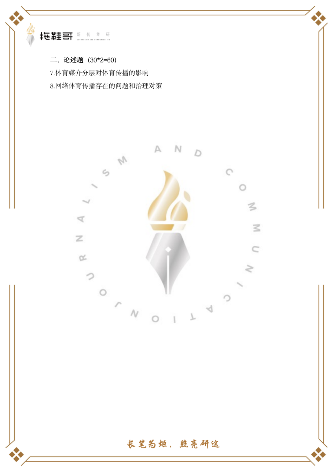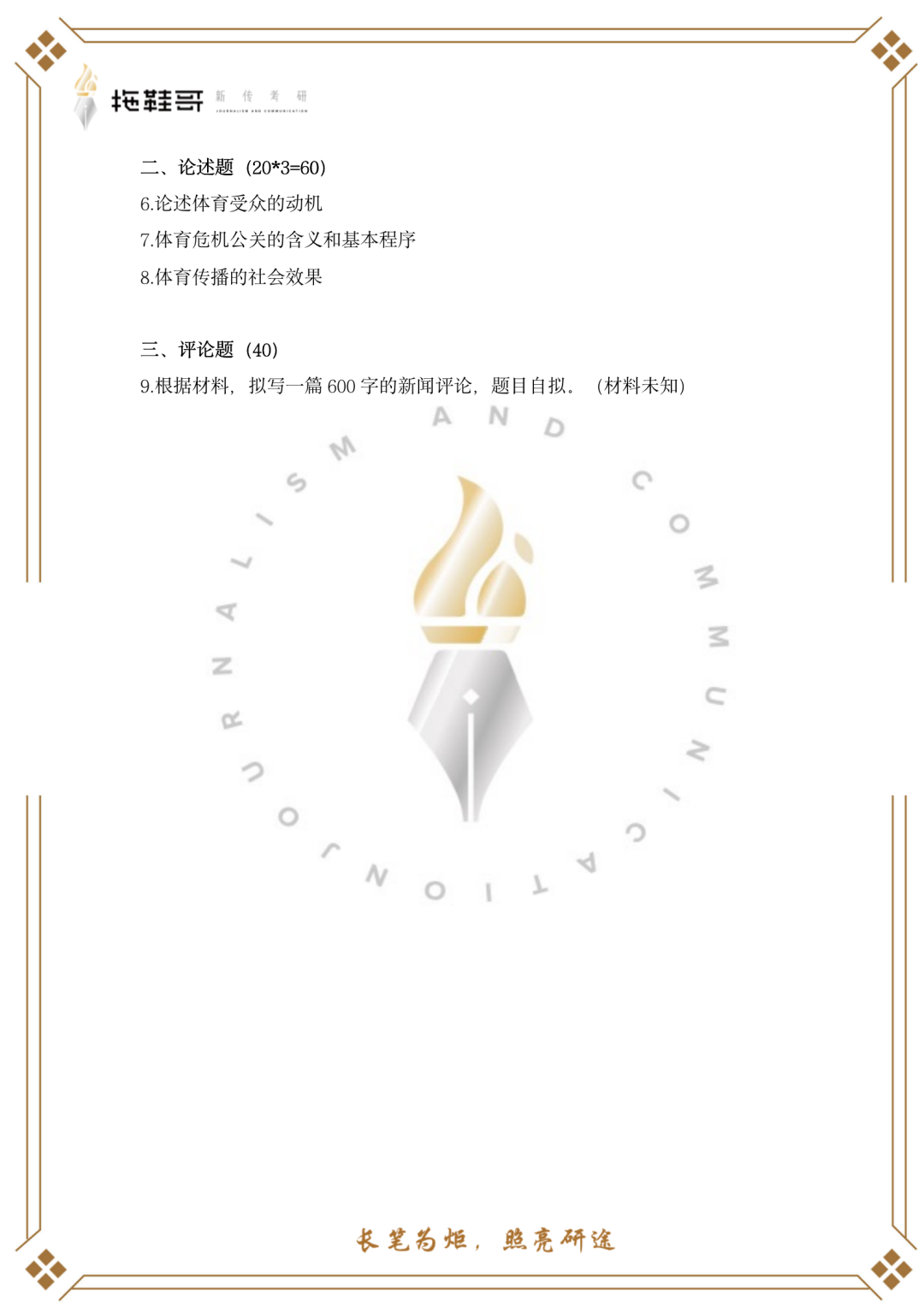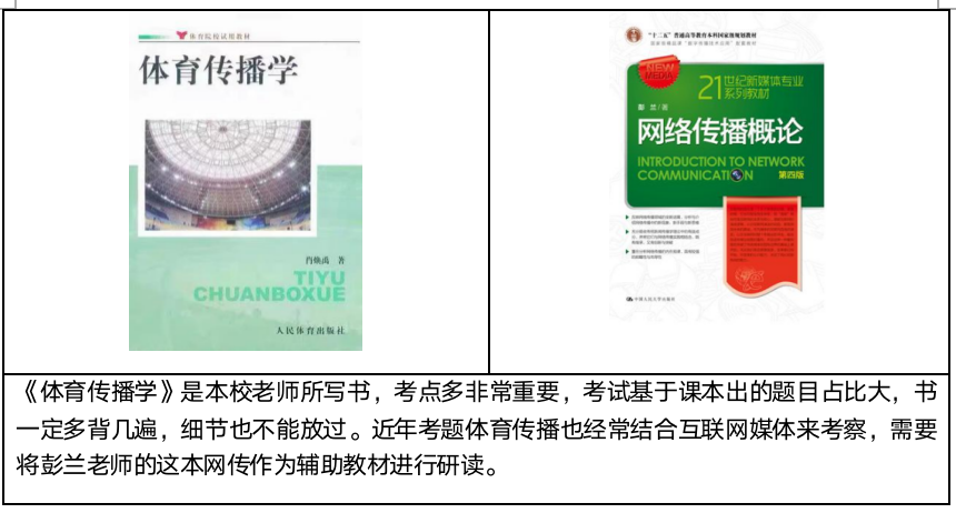 上体学硕现有三本参考书,这是必背要拿下的,新闻学、传播学、和体育传播学很重要,简答论述都会出现,且大多以书本原标题内容形式出题,有时带上新媒体环境的背景进行出题,网传的内容也需要积累。