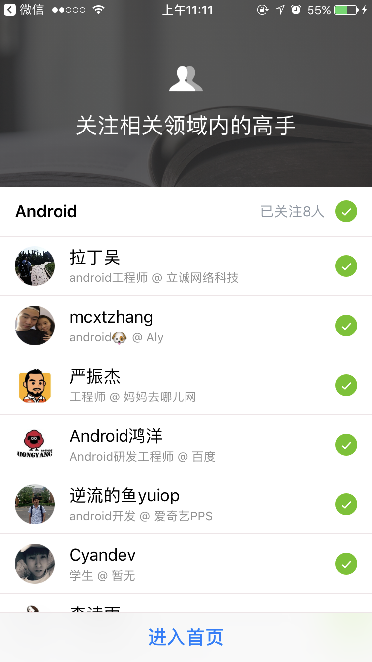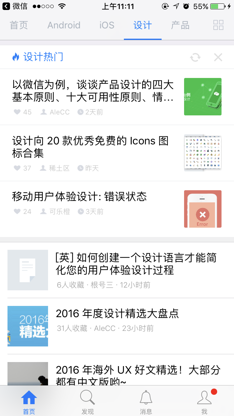 可以自己定制喜欢的文章分类,包括 Android、iOS、产品、运营、前端、设计等等,也可以定制自己喜欢的本类大亨。