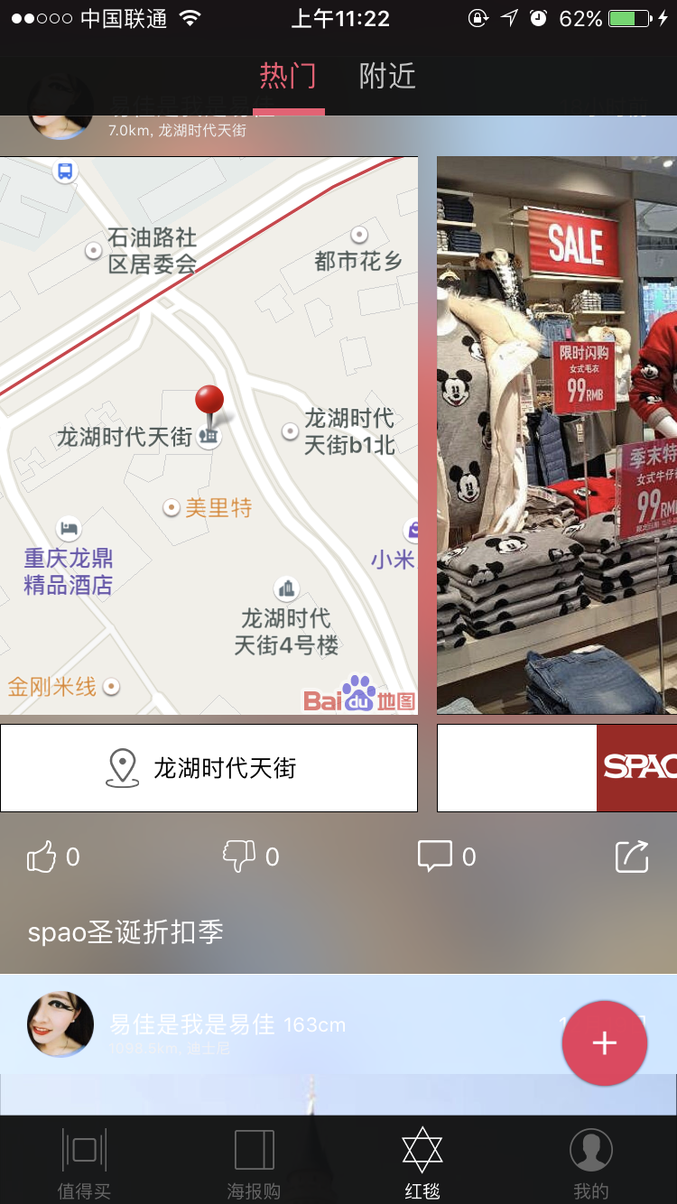 3 最后,还有红毯部分,顾名思义,每个人都可以走自己的红毯,不仅有试衣间照,还有支持用户上传本地折扣。