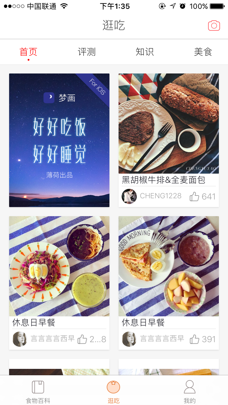 从最早期的版本功能,也是我最爱的功能,查看食物热量、相关营养和推荐指数,到现在的有晒吃的——主要是健康营养的料理、知识、评测等等。