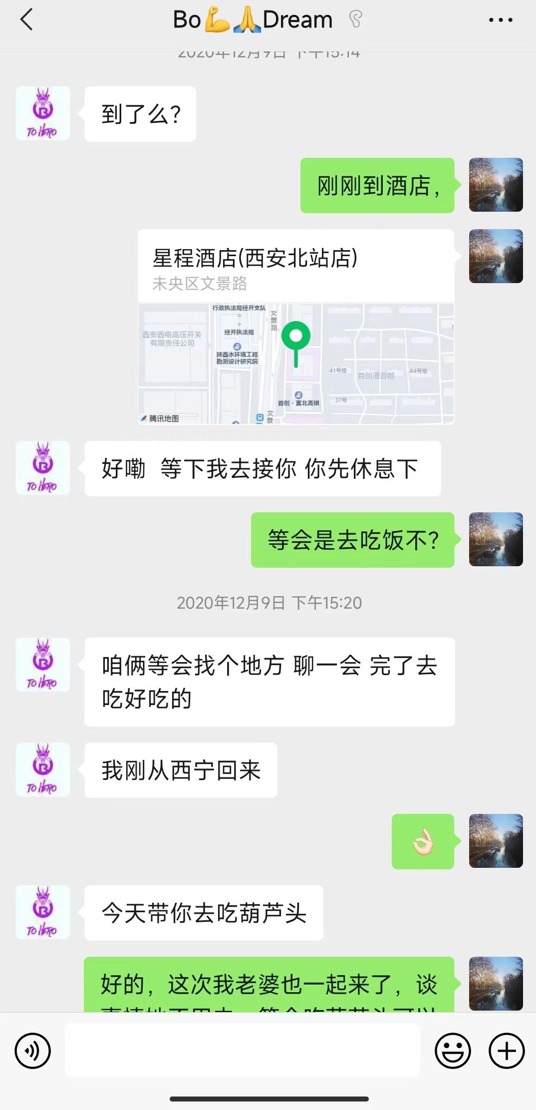 在后续的一系列沟通当中,郑博龙邀请我们赴西安实地参观、与郑博龙其他团队成员见面、以郑博龙母亲的人脉关系展示自己在西安当地的实力,让我们相信他们对于项目后期的助力。