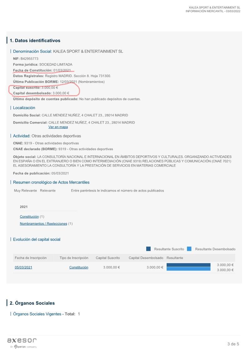 并且最让人啼笑皆非的是,KALEA SPORT ENTERTAINMENT S,L公司注册时间为授权书制作的前一天,授权书制作日为2021年3月2日,该公司注册日为2021年3月1日。