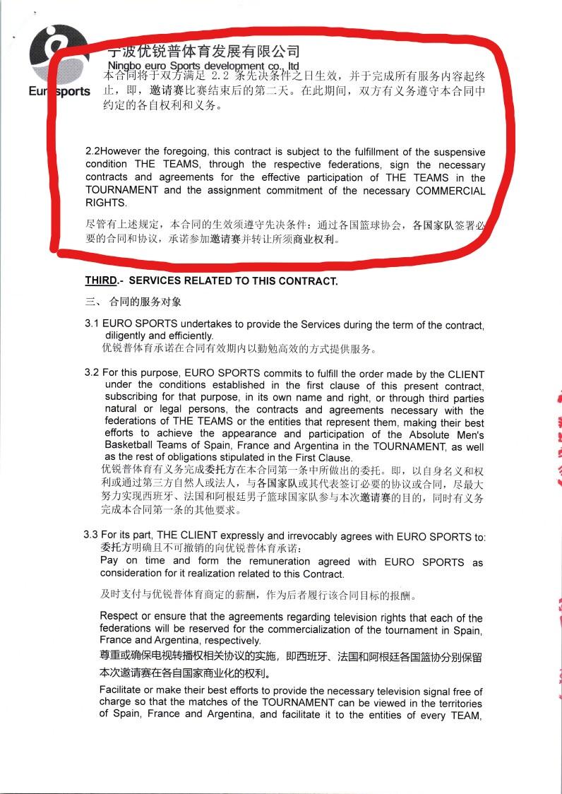彼时,我方仍未知郑博龙之前出具的西班牙篮协授权书系伪造。