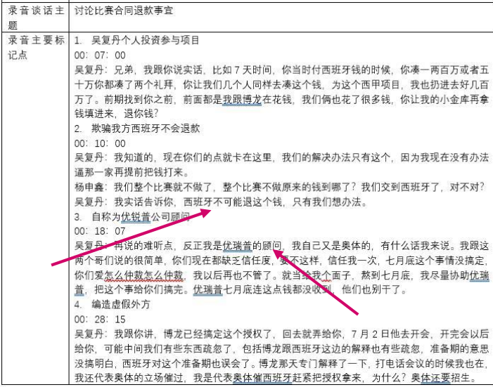 2021年6月28日,吴复旦向我方表示,他虽然是宁波奥体工作人员但也是宁波优锐普公司的顾问,可以明确告知我方,西班牙不可能退钱。