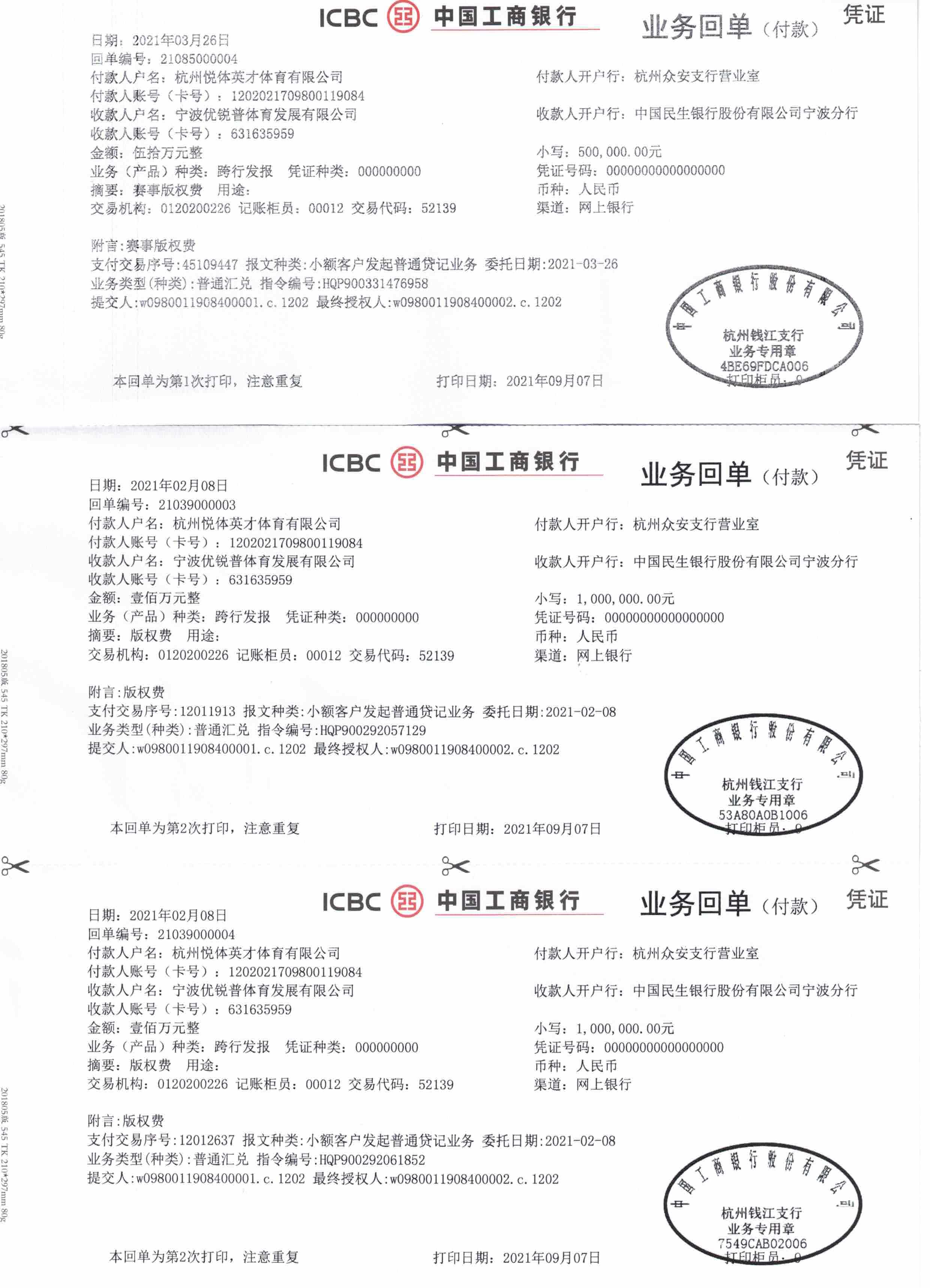 在赛事解除需要退款时,仍“孜孜不倦”将资金转移到国外,使我方更加坚信郑博龙和宁波优锐普涉嫌合伙进行合同诈骗的行为。