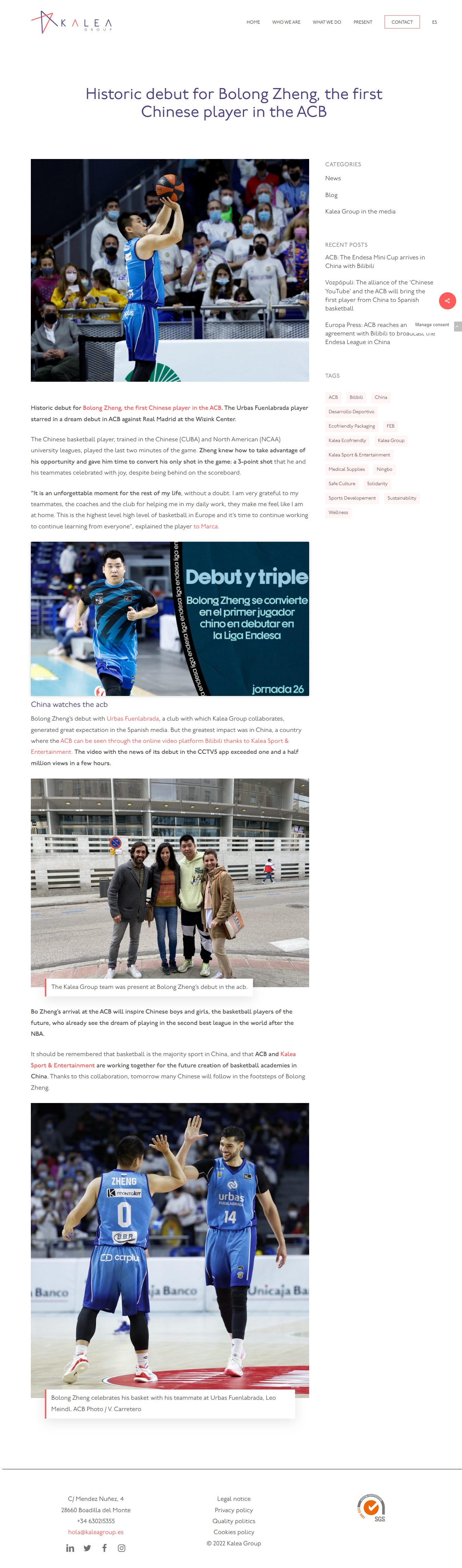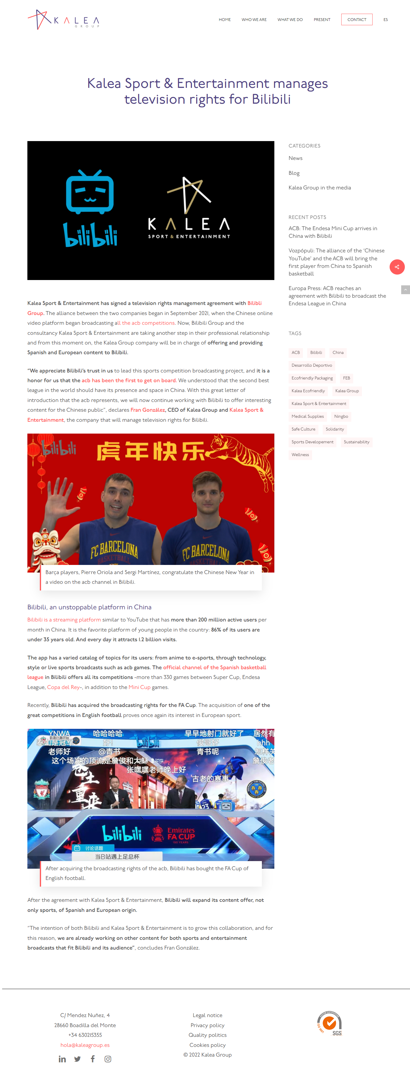 去年曾官宣子公司KALEA SPORT ENTERTAINMENT S,L和Bilibili达成合作关系,入驻B站。