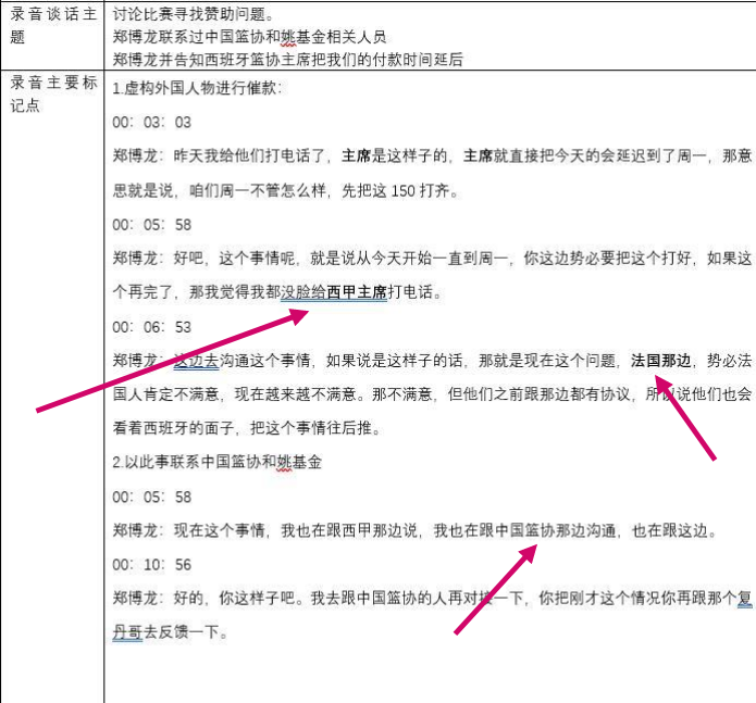 付款期间,郑博龙不断通过虚构各类海外机构人员进行施压(惯用人员为ACB联赛主席与西班牙篮协主席),催促我方不停打款。