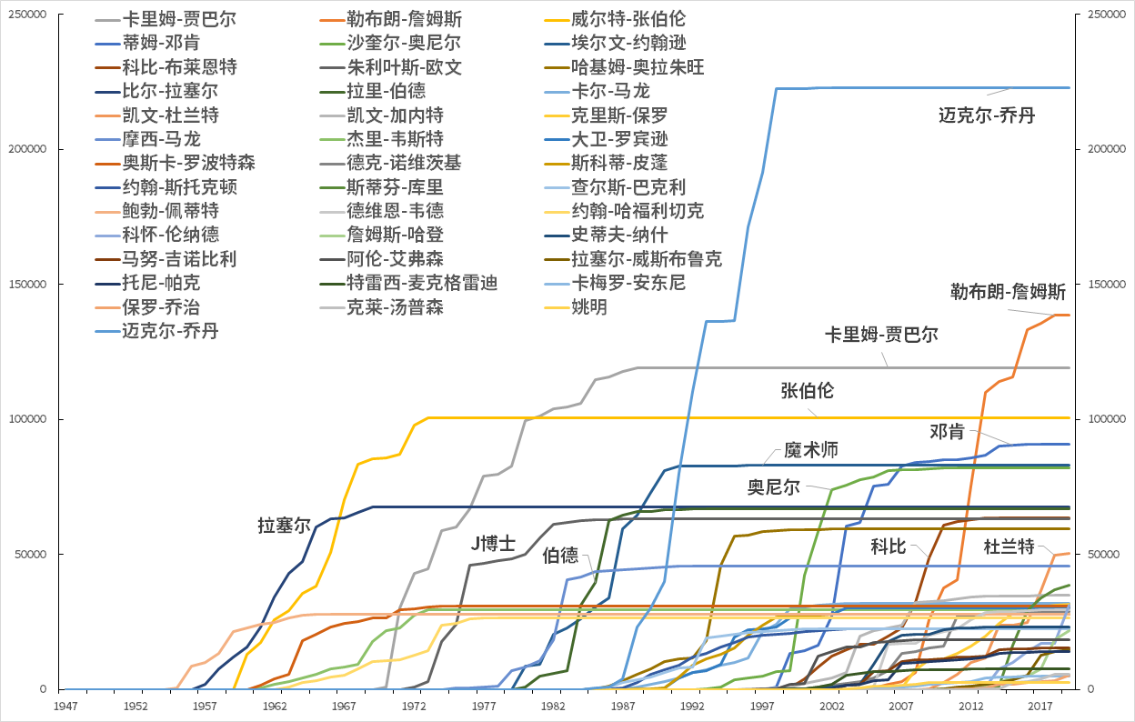NBA球星数据量化分析:历史成就积分榜(多图长文)