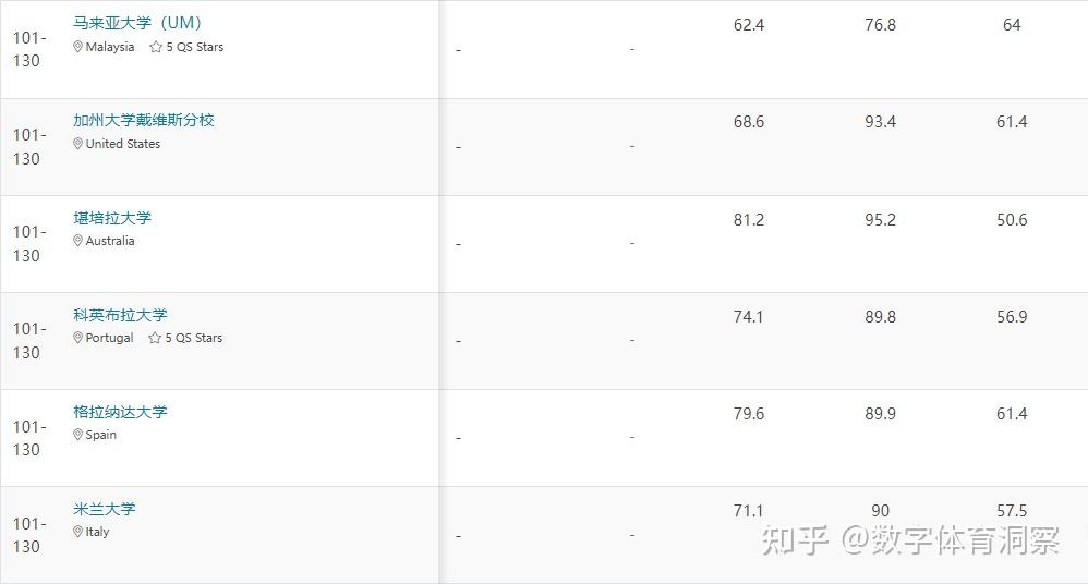 速览:2022年QS世界大学体育学科排名
