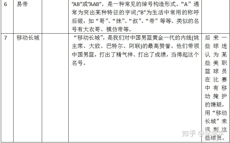 表 3-5易建联的外号和梗
