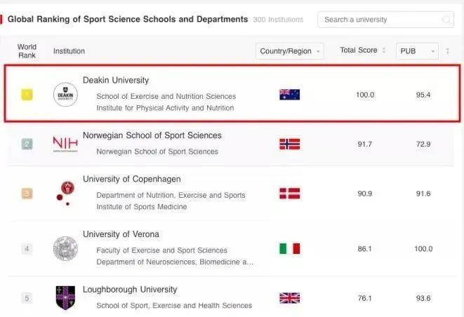 在软科世界大学学术排名中,迪肯大学运动科学专业再次被评为世界第一,这也是迪肯大学在该学科领域连续5年位居全澳大利亚榜首 (2016-2021软科世界大学学术排名)。
