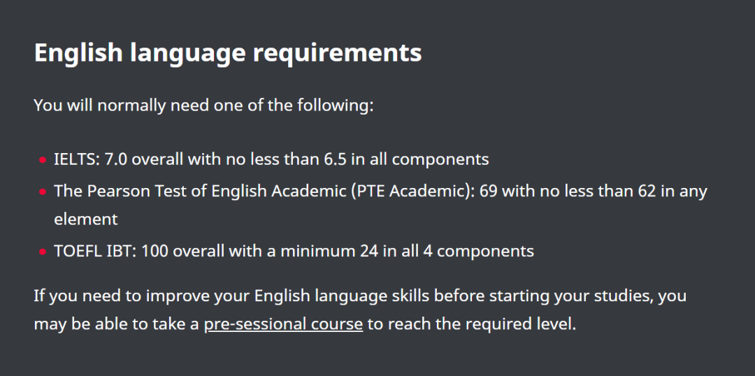 但值得注意的是,巴斯大学对于语言的要求也不低7.0(6.5),对于有意向申请的同学一定要提前准备相关考试。
