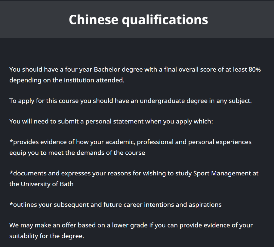 *说明:体育管理硕士作为巴斯大学去年新增设的项目,在选校阶段,我们会推荐同学尝试申请。在递交申请后不到一个月就拿到了offer,这是只有UniWEsporter才有的独家体验。(点击查看更多)