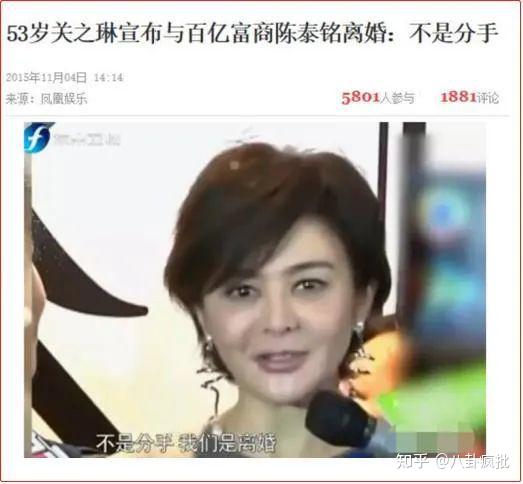 2015年,53岁的关之琳现身台北某活动,在媒体穷追不舍下,她大方回应了与陈泰铭的分手传言,直截了当地说:“不是分手,我们是离婚!”