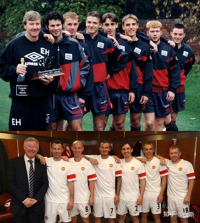 第70分钟,主教练吉格斯将球员吉格斯换上场的镜头真的在现实中出现了,那巨大的横幅也还挂在那里,清楚的写到:‘吉格斯自从1991年就开始蹂躏你们了’。1991-2014,清晰的跨越了23个年头。 963场之后,吉格斯终于告别球员生涯。至此,92班退出了球员的舞台,却没有退出记忆。他们肩并肩走出球场的那一幕,画面太美,不敢直视。谁的思绪倒退三十年,那些夕阳下的伙伴,那些旧日的足迹。那些无与伦比的成长的日子,那些年在一起踢球,又放学回家的少年。当你们随着老特拉福德的阶梯步步而上的时候,真正红魔,是你们的称谓,一起进,一起退。多年后,当我们梦时,当我们笑时,当我们哭时,当我们醉时,都会记起你们,92班。当你们年轻时,可惜,你我已不再年轻……