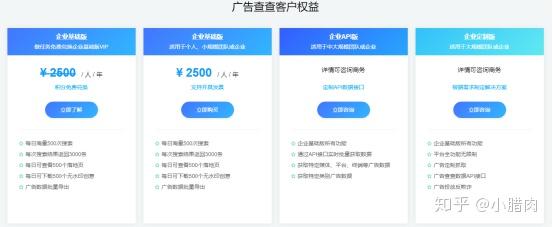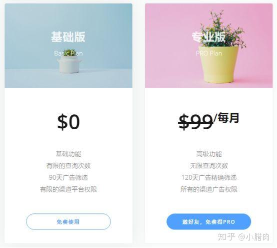 每日搜索次数 10次 -> 500次(2)、每次搜索结果返回3000条(3)、每日可查看2个 -> 500个落地页(4)、每日可下载500个无水印创意(5)、广告数据批量导出2500元/人/年