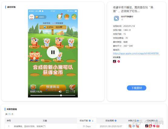 另外,在某个广告素材,有一个与众不同的指标,叫“广告活跃指数”,我们并没有看到该指数的解释。同样有不可解释的指标的还有Bigbigads的“创意指数”。