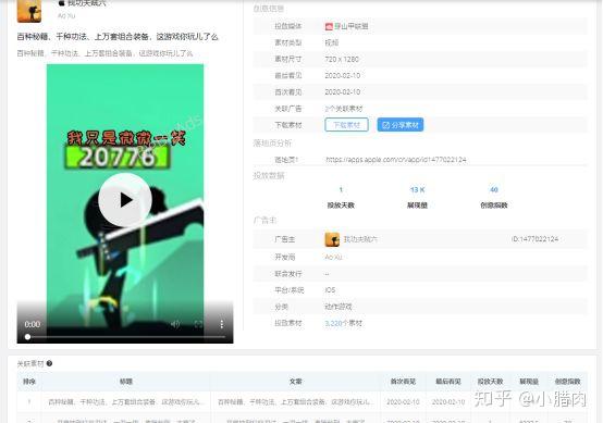 筛选维度支持游戏或者电商下的子分类,以及三大媒体平台。不一样的是,Marketing Desk的素材下直接可以显示该素材和创意的花费,点击以及曝光。我们挑出几条业内的公司,在询问数据是否准确后,得到的回复是但是花费总量的数据少了,但是点击率等指标差不多,。所以,并不影响优化师通过点击率去筛选哪个素材的转化率可能更高。