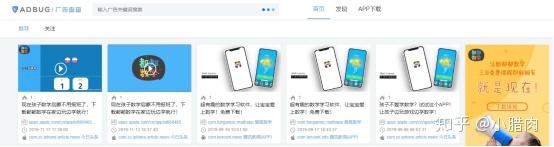 另外,除了行业有筛选,对于广告类型(视频、图片、纯文字等)完全没有区分,用户仅能够在导航栏的搜索框内进行进行检索关键字之后,对搜索出的类目进行筛选。所以优化师要自己分辨出哪些是文案,哪些是图片。