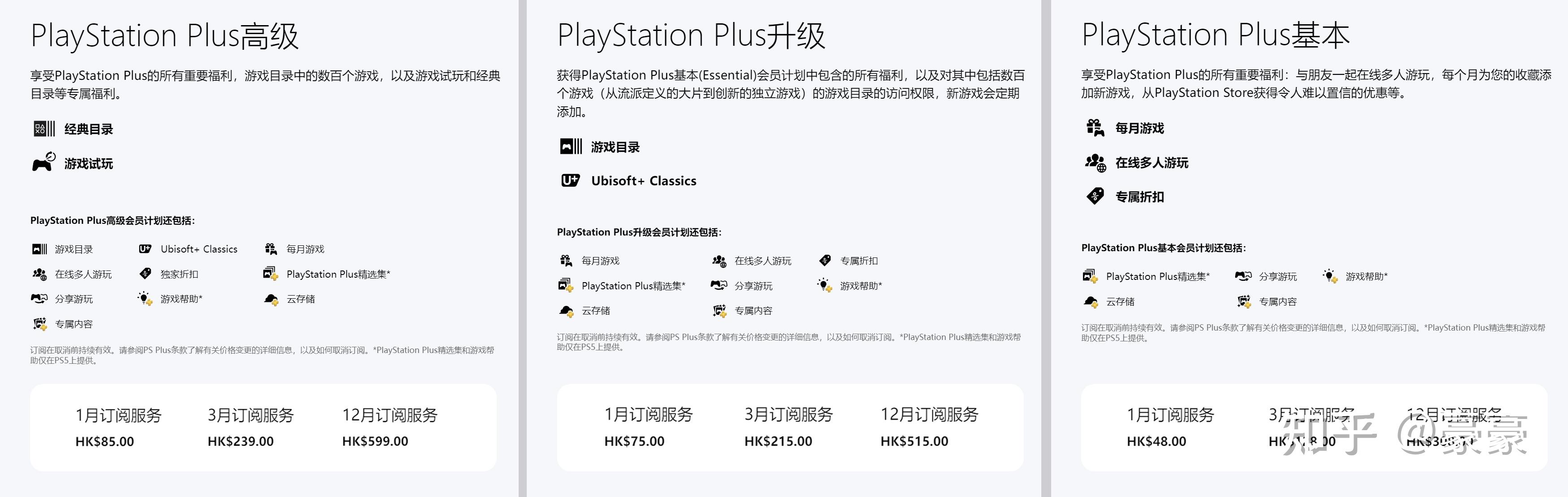 第三档:每月85港元,大概人民币72元左右,一年599港元,大概人民币510元左右,含第一、二档会员全部功能,可以玩经典PS、PS2、PS3(注意:PS3由于架构不同只支持云端游戏,港服并没有云端游戏服务,所以玩不了)游戏,还可以试玩热门游戏。